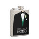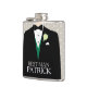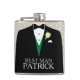 O melhor homem vestido de forma inteligente em um frasco gráfico de casamento de terno e arco preto. Lê o Melhor Homem Patrick. Personalize com seu próprio nome e título. Uma ideia personalizada de presente de excelente para homens se ligando em noites de dólares / noites de embaixamento, ensaios de casamento ou como um favor de casamento. Arte e design por Sarah Trett para www.mylittleedenweddings.com