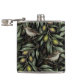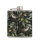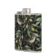 Este frasco apresenta ramos de oliveiras com pequenos avisadores de oliveiras sentados sobre eles.