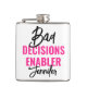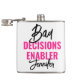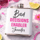 Add a bold and playful touch to your bachelorette party with this “Bad Decisions Enabler” personalized flask. Perfect for the maid of honor or the ultimate partner-in-crime, this sleek and stylish flask features eye-catching typography with a fun mix of script and bold lettering. The custom name detail makes it a memorable keepsake for the celebration and a great gift for bridal party members. Compact and easy to carry, it’s ideal for nights out, party photos, and unforgettable moments with the bride squad.