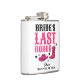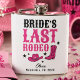 Celebrate the bride’s final rodeo with this stylish “Bride’s Last Rodeo” personalized flask, perfect for bachelorette parties and western-themed celebrations. Featuring bold rodeo-inspired typography, pink cowgirl boots, and customizable details like the bride’s name and location, this flask adds a fun and memorable touch to your party.