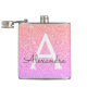 Escamudo cor-de-rosa e Pastel púrpura, esfola fina e esbranquiçada, frasco de monograma elegante. Este Flask pode ser personalizado para incluir seu nome inicial e próprio. O Pink e o Purple Flask é perfeito para uma comemoração de aniversário ou festa de solteira.
