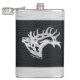 Este Simples "Um de um Tipo", Bull Elk Flask! Ele apresenta uma Silhueta de Elk Touro de Prata em um fundo de couro preto... cercado por bordas de prata! Este é um Design de Arte Original do Artista Kerry Miller.
