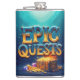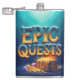 Uma pintura aquosa vibrante com a frase "Epic Quests" em uma escrita artística ousada. As letras são enfeitadas com sotaques de ouro a brilhar e rodeadas por um tesouro cheio de joias e moedas de ouro. O fundo é um fundo azul profundo, reminiscente das profundezas do oceano, acrescentando ao senso de aventura e caça ao tesouro.