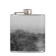 Um pequeno caminho para a praia em neblina grossa. Fotografia em preto e branco.