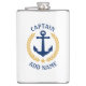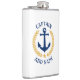 Um frasco temático náutico personalizado com a sua classificação Capitão ou outro título e o seu nome de barco, nome de família ou outro texto desejado. Apresentando uma âncora náutica, folhas de ouro e emblema de estrela, desenhada por medida. Altere facilmente a cor do plano de fundo para corresponder ao seu decoro ou tema atual. Faz um presente excelente para qualquer ocasião.