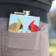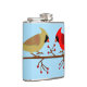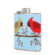 Este maravilhoso frasco de Natal apresenta um bonito par de Cardinais Nortes. O pássaro macho é vermelho vivo com uma crista vermelha na cabeça e a ave fêmea é uma cor amarela acastanhada com um pouco de vermelho em suas asas e cauda. Ambos os pássaros têm um bico vermelho. Os pássaros estão parados num galho castanho coberto por um fazer festivo de frutas vermelhas, este é um belo design de Natal, especialmente para casais.