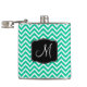Contrastes brilhantes de verde-Caribe, branco e preto num padrão de zigue-zague gástrico fazem deste frasco design uma escolha adorável. Com o monograma personalizado, você pode editar o monograma de amostra com o texto desejado para um presente personalizado ou tratar por si mesmo.