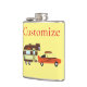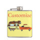 Carro vintage rebocando caravana de camper RV no viagem de férias para personalizar, mudando para seu nome