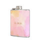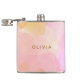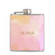 Este frasco elegante apresenta um design abstrato em aquarela rosa suave e pêssego com tons dourados quentes e um nome personalizado moderno em letras douradas elegantes. É um acessório chique para festas de despedida de solteira, presentes para damas de honra ou celebrações de aniversário marcantes. Uma peça feminina e trendy perfeita para diversão em movimento.