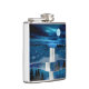 Cena abstrato de paisagem de uma cascata de cascata com lua, pássaros, céu noturno e estrelas.
