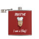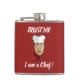 Cabeça de chef com chapéu, corcunda vermelha e texto personalizado.