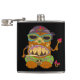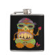 Ilustração da estátua de chef de bandana tiki, segurando uma faca grande e um cogumelo em outra mão. Frasco preto engraçado.