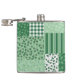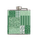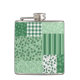 Um frasco de anca com uma manta de retalhos falsa de Shamrocks com padrões florais, verifique Gingham e padrões distribuídos. Parte da coleção 'Shamrocks' Posh & Painterly, este padrão pode ser ajustado para ajustado qualquer Flask.