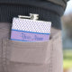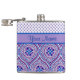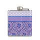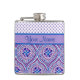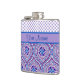 Um chic Hip Flask para personalizar, com um padrão não correspondente de formas tradicionais de ogee em EggPlant, Blue and White, agrupado com bolinhas Pale Mauve em um fundo branco. Parte da coleção Posh & Painterly 'Purple Pop'.