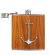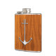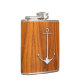 Um cromo prateado de estilo náutico moderno, como o aplicado num decor de impressão de madeira de teak, para um belo presente de frasco personalizado. Use o link "Perguntar a este Designer" para entrar em contato conosco com suas solicitações especiais de design ou para obter assistência com qualquer das suas necessidades de personalização.