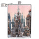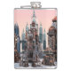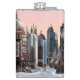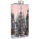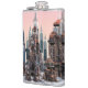 Renderização em 3D de uma cidade futurista de ficção científica num fundo cor-de-rosa