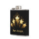Cinco estrelas brilhantes de folha de ouro sobre fundo preto.