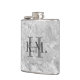 Um tom em monograma de tons em vários tons de cinza, decora esse Fláscara de Coragem Líquida em um fundo de granito de cinza, fazer-o um dom muito legal e masculino. É perfeito para os padrinhos de casamento na festa de casamento, para um chefe, sogro ou seu pai. Apenas adicione uma garrafa de seu favorito para torná-la mais especial.