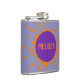 Personalizar este frasco com o seu nome ou iniciais. Círculos roxos e laranja, o padrão quadrado enfeite seu estoque de ouro líquido.