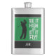 Citação de golfeador fofo "Tee It High & Let it Fly!" design de frasco de bebida de aço inoxidável apresenta uma fonte divertida de meados do século em branco combinada com uma silhueta de golfeador masculino em preto sobre um fundo verde kelly. As cores da citação, do golfeador e do fundo são personalizáveis. Personalize com iniciais monogramadas, nome ou texto curto com o modelo fácil de usar. A cor da fonte ou o estilo das iniciais também podem ser personalizados. A tipografia e o golfeador são designs gráficos vetoriais e podem ser facilmente transferidos para outros produtos Zazzle grandes ou pequenos, e manterão a clareza sem pixelar. Mensagem com solicitações de cores personalizadas ou perguntas.
