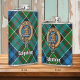 Crachá da crista Clan Colquhoun rodeado por uma correia e fivela sobre o tartan. Custom Text.