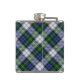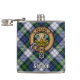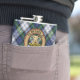 Crachá de clã Gordon crest cercado por uma correia e fivela sobre o tartan vestido. Texto personalizado.