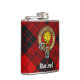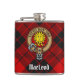 Clan MacLeod do crachá da crista Raasay rodeado por uma correia e fivela sobre fundo tartano. Texto personalizado de ambos os lados.