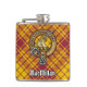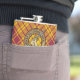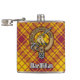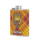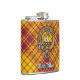 Crachá da crista Clan MacMillan rodeado por uma correia e fivela sobre o tartan vestido. Custom Text.