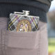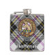 Crachá da crista Clan MacPherson rodeado por uma correia e fivela sobre o tartã de vestido. Custom Text.