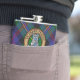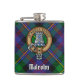 Clan Malcolm or MacCallum crest badge surrounded by a strap and buckle over tartan. Custom text.