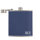 Um cantil moderno e elegante com fundo azul e tipografia branca simples, perfeito para adicionar suas iniciais monogramadas. O presente perfeito e atencioso para alguém.