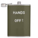 Cantil Classy Khaki Flask texto "Hands Off"> Frascos de
