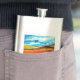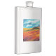 Colorida paisagem abstrato de colinas e céu em cores amarelo, vermelho, verde e azul.