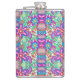 Colorful flask with vibrant, symmetrical floral patterns in pink, blue, green, and orange tones. The design conveys a playful, retro vibe.