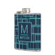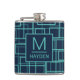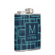 Cantil Cool Blue Geometric Grid Pattern Monogrammed Flask