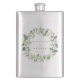 Um frasco hip elegante e personalizado para celebrações de casamento/favors/lembranças. Com snowberries pintadas à mão e eucalipto dispostos em uma bela coroa botânica. Todo o texto é totalmente editável para que você possa facilmente alterar a mensagem e mudar o estilo/cor/tamanho/posição da fonte. Itens coordenados disponíveis na minha loja.