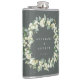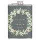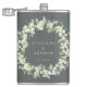 Um frasco hip elegante e personalizado para celebrações de casamento/lembranças/presentes. Com snowberries pintadas à mão e eucalipto dispostos em uma bela coroa botânica. Todo o texto é totalmente editável para que você possa facilmente alterar a mensagem e mudar o estilo/cor/tamanho/posição da fonte. Itens coordenados disponíveis na minha loja.