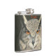 Um lápis colorido e desenho de caneta de uma Coruja Excelente Coroa Coroa com olhos laranja perfurantes.