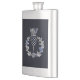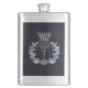 Um cromo de prata como o design escocês do applique do cardo em um fundo atrevido do impressão do estilo da fibra do carbono dos azuis marinhos.