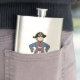 Um rapaz vestido de pirata veste um longo casaco e um pirata negro que adorava crânio e ossos cruzados neste trabalho original de Richard H. Fay.