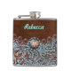 Frasco de dama de honra para chá de noiva country ocidental turquesa marrom rústico. Acessórios de moda de couro do velho oeste. Acessórios de moda de cowboy do sudoeste.