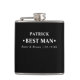 Hip Flashes personalizados são presentes de manutenção de excelente para o melhor homem e padrinhos de casamento. Essa design de tipografia minimalista é escrita em tipografia moderna e ousada e pode ser personalizada para cada partido de noivos. O nome modelo está pronto para você adicionar o nome do melhor homem, os nomes da noiva e noiva e a data do casamento. Este design tem uma paleta de cores preta e branca. Procure na nossa loja cores de alternativo e coordenando presentes de festa de casamento.