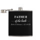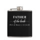 Hip Flask personalizado para o Pai da Noiva. Este design de tipografia minimalista é escrito em uma escrita elegante e na tipografia moderna. O nome modelo está pronto para você adicionar os nomes da noiva e do noivo e a data do casamento. Este design tem uma paleta de cores preta e branca. Procure na nossa loja cores de alternativo e coordene presentes de manutenção para a sua festa de casamento.