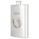 Balão prateado com veados e monograma. Adicione, primeiro, as iniciais do meio e do sobrenome em cinzas escuras sobre a imagem de um par de galhadas. Dar ideias para um caçador, atirador ou qualquer cara.