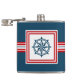 Design com temas náuticos com faixas vermelhas e brancas e decoração de bússolas em quadrados listrados