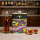 Um padrão dinâmico apresenta espirais coloridas, estrelas vibrantes e pontos dispersos contra um fundo preto profundo.