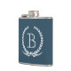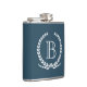 Design de monograma com decoração de soleira de louros em fundo azul
