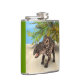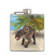Renderização digital 3D de um dinossauro ceratopsiano Einiossauro sobre uma palma verde e o fundo azul do céu