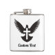 Silhueta de pomba com asas abertas e uma cruz. Texto personalizado.