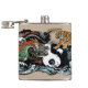 Dragão Verde chinês do leste asiático versus tigre na paisagem com cascata, rochas e ondas de água. Duas criaturas espirituais no Clássico Feng Shui representando Yin Yang. Ilustração